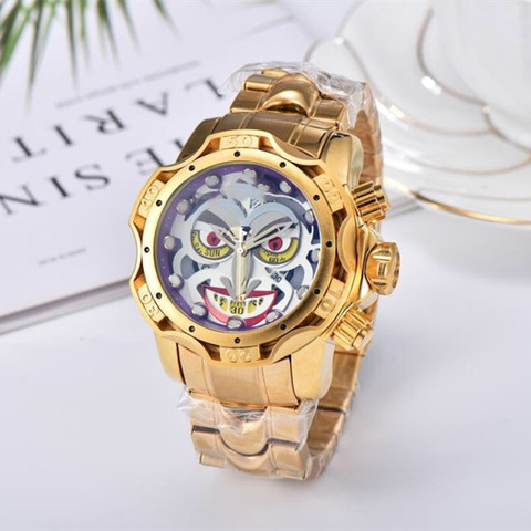 Reloj de cuarzo con correa de acero para hombre, cronógrafo con esfera del Joker, novedad, gran oferta